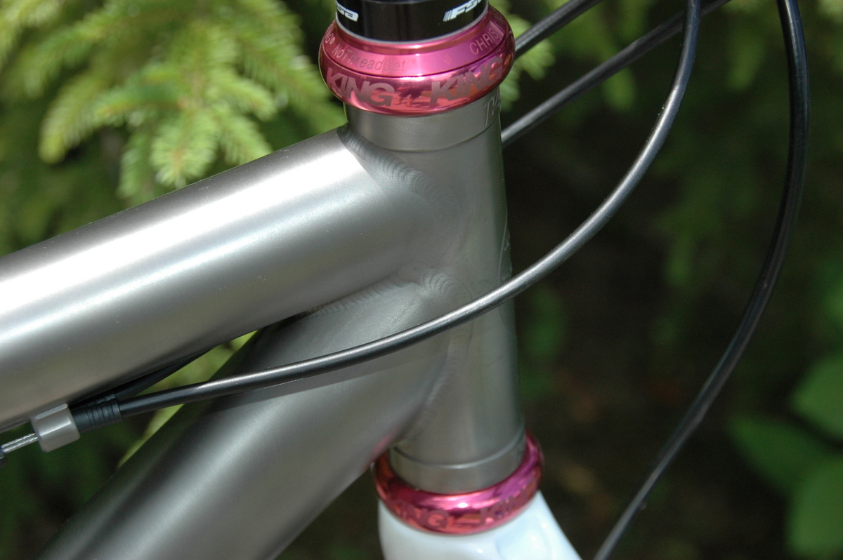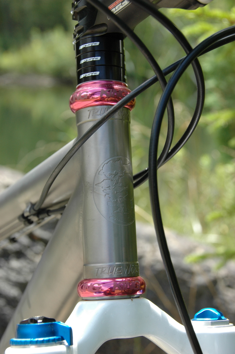 Mari’s bike features an XT Dyna-sys 10 speed drivetrain, Fox 29 Fit RLC fork complete with Kashima coat, Chris King headset and Eriksen ‘Sweet Post’. Mari and her husband love to travel and this bike will enable them to hit up the trails all around the globe in style and comfort.