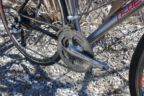 Dave got a new cross bike just in time for the Paris to Ancaster race. This race takes place every April in Ontario and is attended by upwards of 2000 riders. Riders such as Jeremy Powers and Alison Sydor will vie for the overall win, but i can guarantee you they will be jealous of Dave’s new bike. This bike features thoughtful touches such as mountain bike gearing in the rear for a wide gear range, an Eriksen Ti seat post for a supple ride and hand built wheels featuring Dura Ace 7900 hubs and Mavic CXP 33 rims.