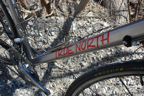 Pat’s other True North has Campy components so we wanted to stick with that to ensure cross-compatibility of wheels. Pat already owned a nice set of race wheels so we included those in the build. However the one place where we feel Campagnolo falls a bit short of Shimano is on their high end triple cranksets. The Dura-Ace crankset is considerably lighter then it’s Campy counterpart so we decided that would be the way to go. So this bike ended up with a Tripartite drivetrain; Italian Derailleurs, a German Connex chain and a Japanese crankset. You can rest assured  however that this union will be used for good.