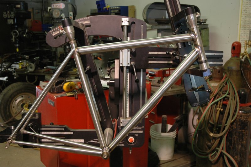 I am still trying to work through a couple of builds during the move. I don’t want to be too much behind schedual going into April. This is the beginning of an True Temper S3 road frame. Just for kicks I weighted out the tubeset before and after mitring. It appears I cut almost 200 grams off the medium size tubeset. The welds look particularly nice – it must be because I have been building so many titanium frames lately.